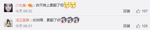 网友少女盏调侃:昨天晚上累翻了吧。