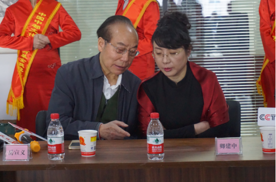 岳宣义部长讲话前与石晓菲院长亲切交谈