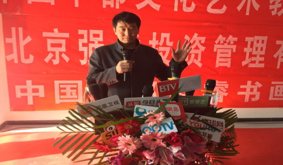 中国中都文化艺术教育基金执行主任、中都圣睿书画院理事长、北京强盾投资管理有限公司董事长赵志刚先生宣布剪彩仪式开始