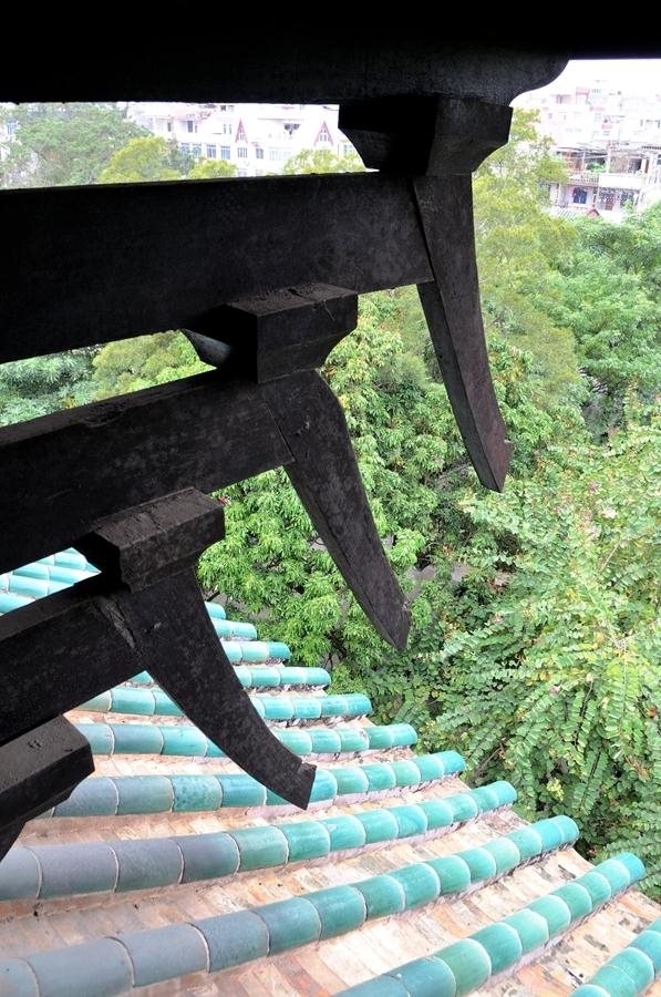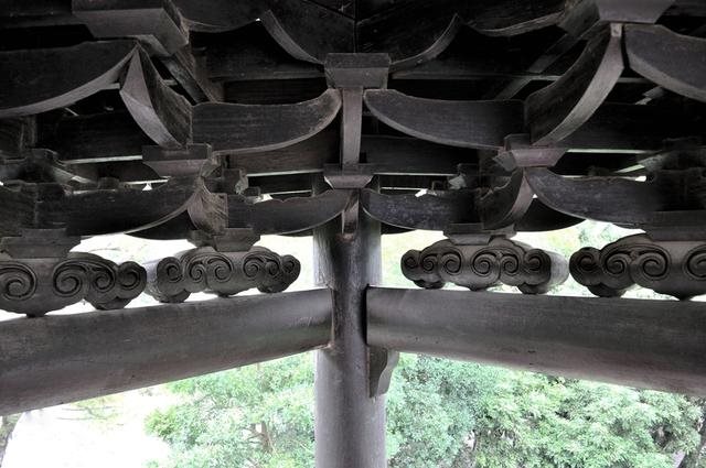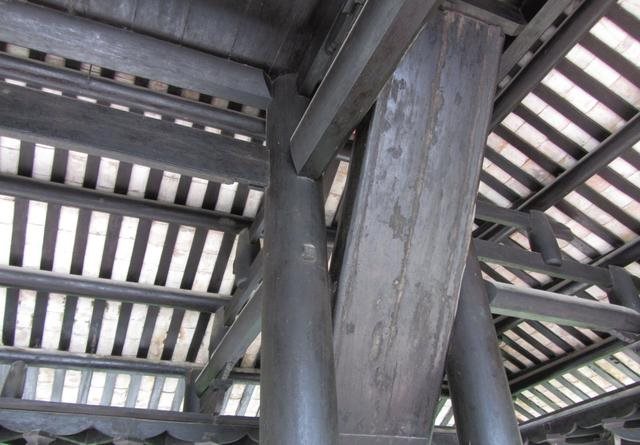 这座建筑是活的不是死的。悬空柱柱头上还承托着大梁一道