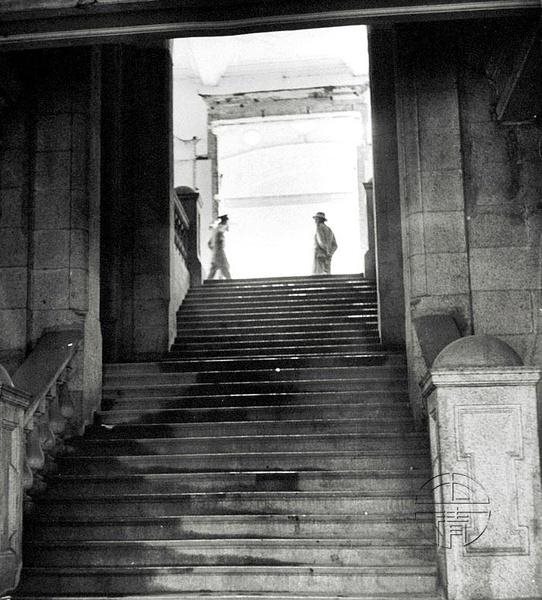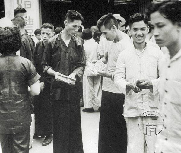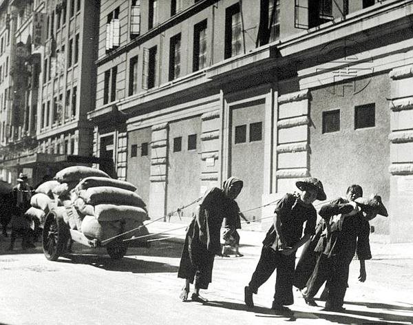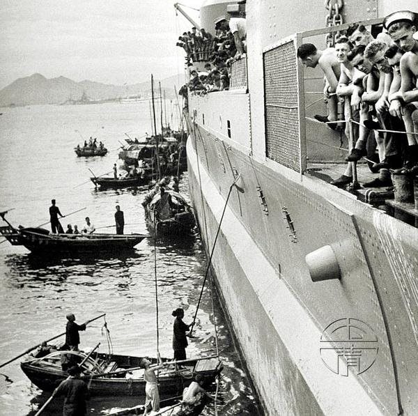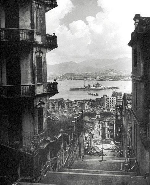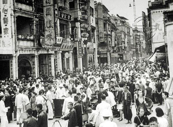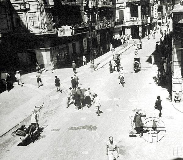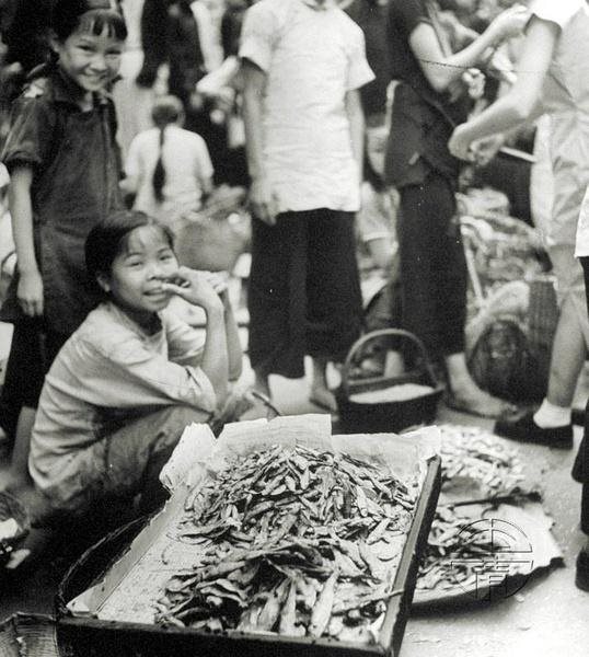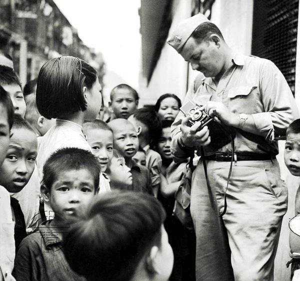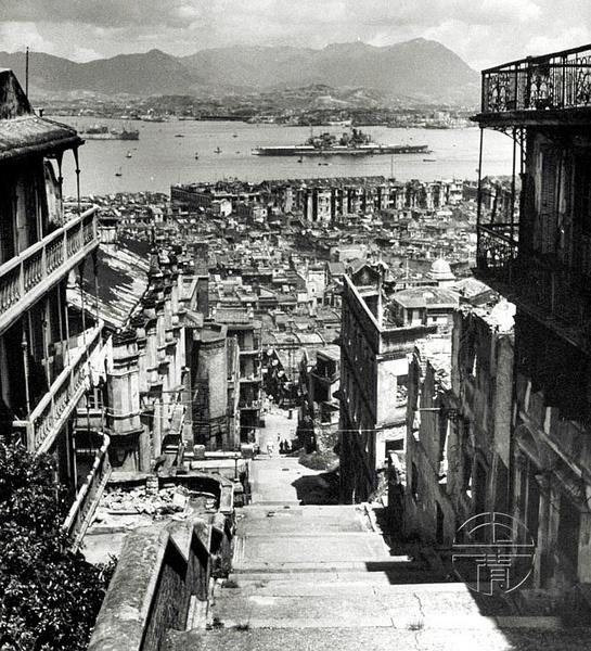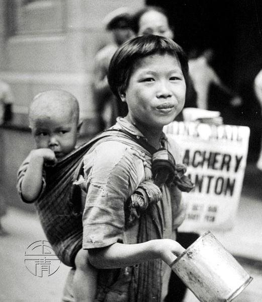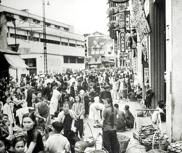 1945年9月24日《生活》杂志记者约翰赴港报道,在皇后大道一市场前被小孩围观。