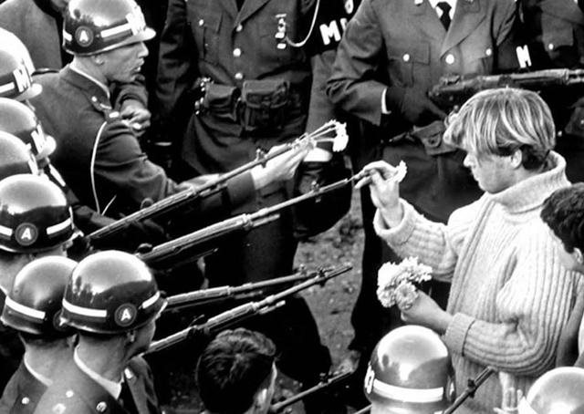 男子在枪口上插上鲜花