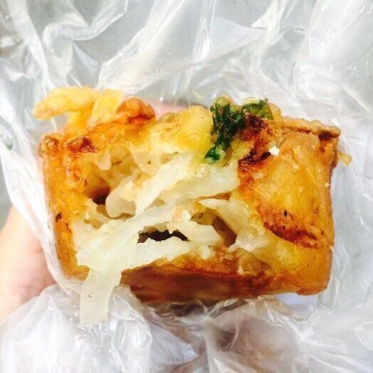 4.在上海长大的人基本都难掩对油墩子的喜爱。酥酥的脆皮金灿灿地泛着光,咬上一口,里面塞满白色的萝卜丝和翠绿的葱花,颜色漂亮极了。