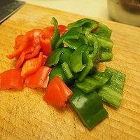 5. 青红椒切小块。根据口味可以选择青椒或者青菜都是不错的。