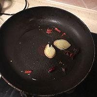 9. 锅中放油,烧热后放红辣椒、姜片、八角,煸炒至出香味。