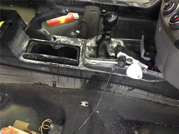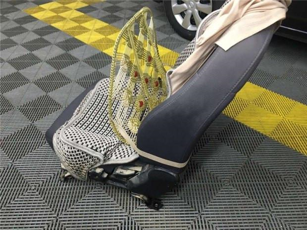 其次,检查内饰,前后椅座(倒翻)查看弹簧及内套绒布是否残留污泥及发霉味。