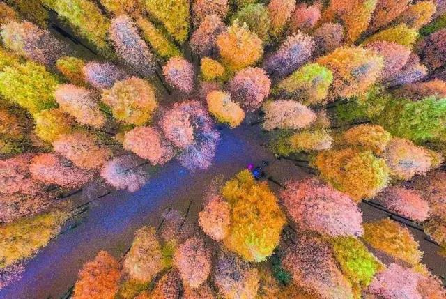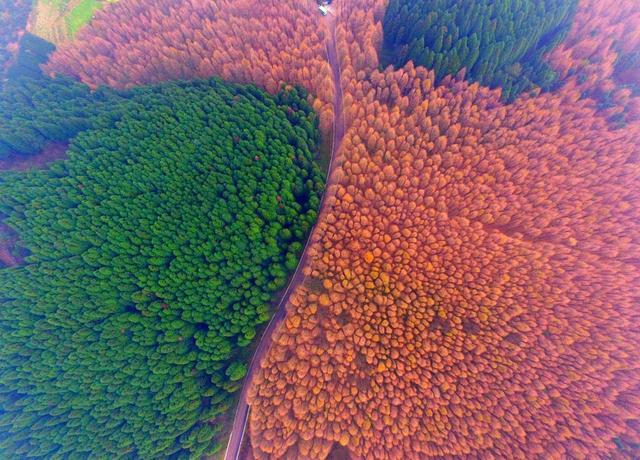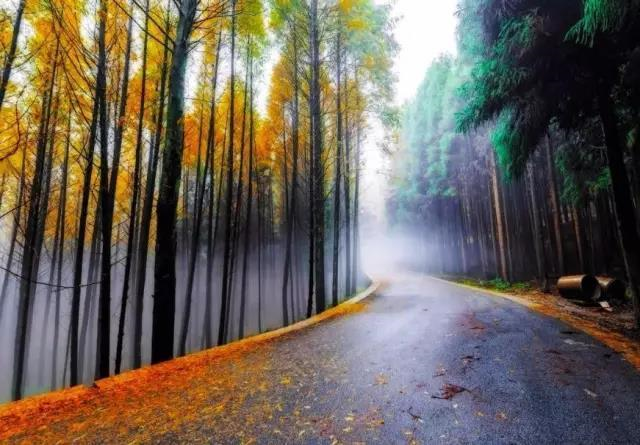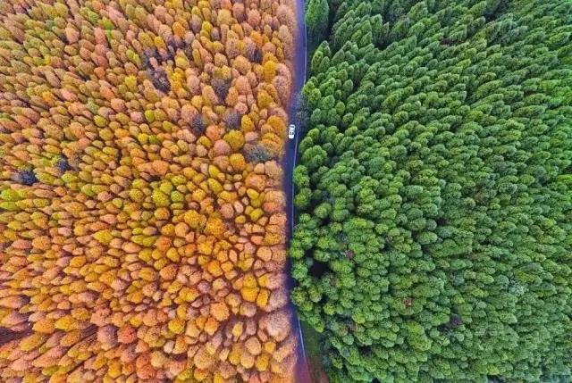 一条狭长绵延的公路,将森林鲜明地分隔为两种色系,可谓“泾渭分明”,随便一瞥都能带来强烈的视觉震撼,美得惊心动魄,令人不敢相信自己的眼睛!