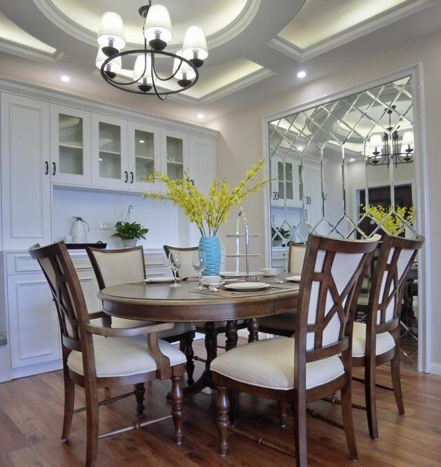 餐厅还安装了银镜,扩大空间感,不会显得那么拘谨。