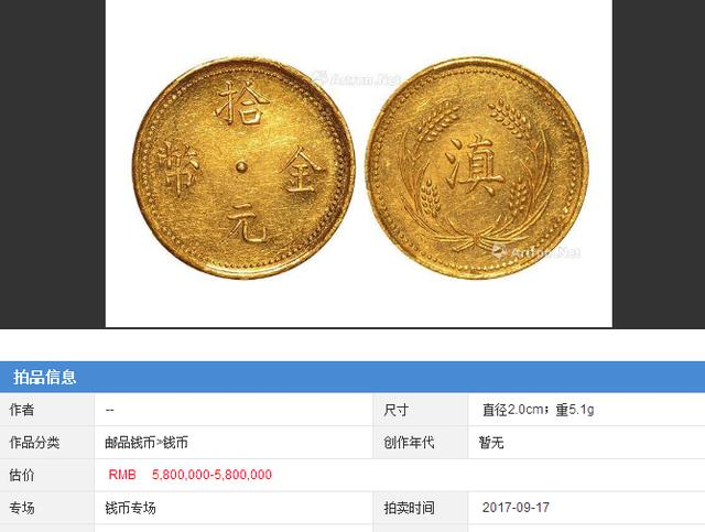 民国十六年云南“滇”字拾元金币