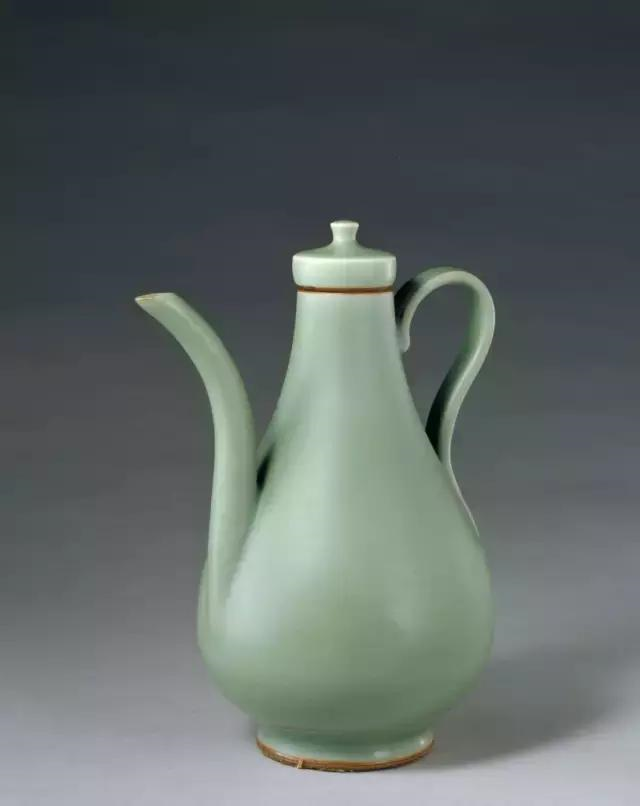 此壶为龙泉窑制品,釉色莹润,青翠欲滴,造型为玉壶春瓶形,具有元代瓷器的典型特征。