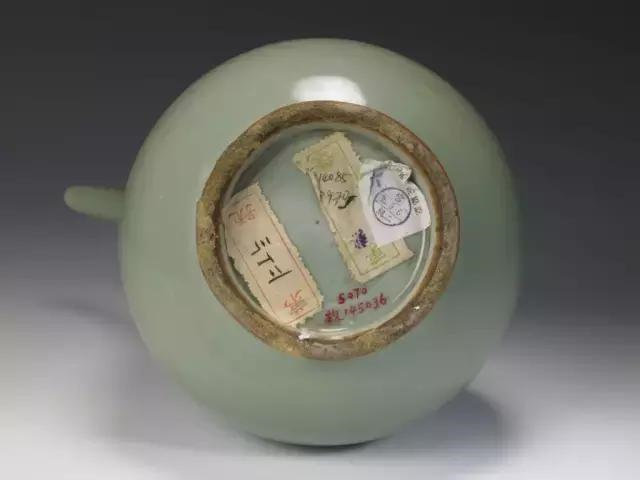 此器造型古朴大方,以釉色取胜,梅子青釉胜于一般青釉,可与翡翠媲美,尤为难得。