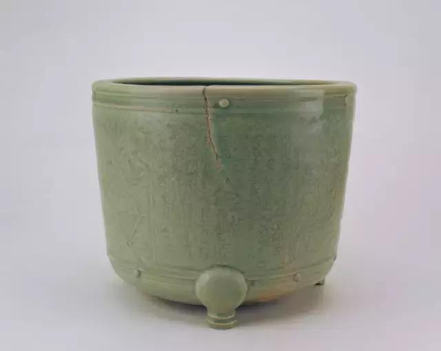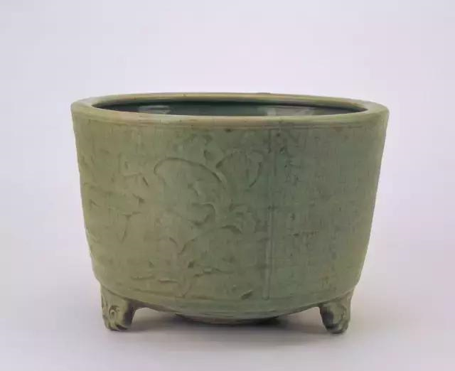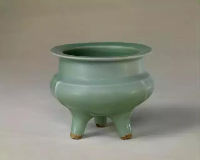 此炉造型承袭元龙泉窑风格,施釉较薄,釉色偏黄,制作粗糙,为明代晚期龙泉窑典型作品。