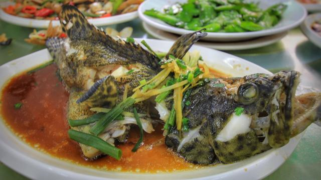 石斑鱼,清蒸,肉质特别嫩,这种鱼并不适合煎,煎的石斑鱼会影响鱼肉的口感,只用简单的清蒸就好,也不用太多作料,海鲜酱油就够了,但是一定要把握好火候,否则就蒸老了。我觉得这点小胡子家做的特别好,火候把握特别到位。