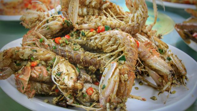 皮皮虾,推荐椒盐,皮脆肉嫩且入味,相比基围虾来说皮皮虾不仅肉更多,而且口感更好。