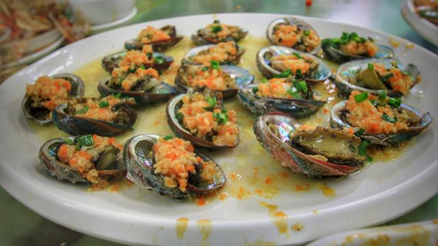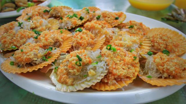 扇贝,蒜蓉粉丝蒸,不是所有的海鲜都适合椒盐和辣炒的,扇贝,用蒜蓉蒸或用蒜蓉粉丝蒸,蒸出来的味道特别香特别鲜,简直是人间美味啊!