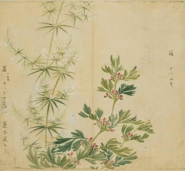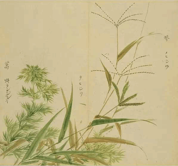 1、荇菜 参差荇菜,左右流之。 窈窕淑女,寤寐求之。 ——《周南.关雎》 2、莼菜 思乐泮水,薄采其茆 ——《鲁颂.泮水》。 茆:莼菜 3、飞蓬 自伯之东,首如飞蓬。 岂无膏沐,谁适为容。 ——《卫风.伯兮》 4、蒌蒿(芦蒿) 翘翘错薪,言刈其蒌; 之子于归,言秣其驹。 ——《周南.汉广》 5、苹(大萍或白萍) 于以采苹?南涧之滨; 于以采藻?于彼行潦。 ——《召南.采苹》 6、白茅 野有死麋,白茅包之。 有女怀春,吉士诱之。 ——《召南.野有死麋》 7、黍 彼黍离离,彼稷之苗。 行迈靡靡,中心摇摇。 知我者,谓我心忧; 不知我者,谓我何求。 悠悠苍天,此何人哉! ——《王风.黍离》 8、木槿 有女同车,颜如舜华。 将翱将翔,佩玉琼琚。 彼美孟姜,洵美且都。 ——《郑风.有女同车》 9、萱草 焉得谖草,言树之背。 愿言思伯,便我心痗。 ——《卫风.伯兮》 10、艾蒿 彼采萧兮, 一日不见, 如三秋兮。 ——《王风.采葛》 11、蓼蓝 终朝采蓝,不盈一襜, 五日为期,六日不詹。 ——《小雅.采绿》 12、卷耳(又名苍耳) 采采卷耳,不盈倾筐。 嗟我怀人,寘彼周行。 ——《周南.卷耳》 13、桃 桃之夭夭,灼灼其华。 之子于归,宜其室家。 ——《周南.桃夭》 14、蕨菜 陟彼南山,言采其蕨。 未见君子,忧心啜啜。 亦既见止,亦既觏止,我心则说。 ——《召南.草虫》 15、梨 蔽芾甘棠,勿剪勿伐,召伯所茏。 蔽芾甘棠,勿剪勿败,召伯所憩。 蔽芾甘棠,勿剪勿拜,召伯所说。 ——《召南.甘棠》 16、梅 摽有梅,其实七兮。求我庶士,迨其吉兮。 摽有梅,其实三兮。求我庶士,迨其今兮。 摽有梅,顷筐塈之。求我庶士,迨其谓之。 ——《召南.摽有梅》 17、柏 泛彼柏舟,亦泛其流。 耿耿不寐,如有隐忧。 微我无酒,以敖以游。 ——《国风.邶风.柏舟》 18、酸枣树 凯风自南,吹彼棘心。 棘心夭夭,母氏劬劳。 凯风自南,吹彼棘薪。 母氏甚善,我无令人。 爰有寒泉?在浚之下。 有子七人,母氏劳苦。 睍睆黄鸟,载好其音。 有子七人,莫慰母心。 ——《邶风.凯风》 19、匏瓜 匏有苦叶,济有深涉。 深则厉,浅则揭。 有弥济盈,有鷕雉鸣。 济盈不濡轨,雉鸣求其牡。 雍雍鸣雁,旭日始旦。 士如归妻,迨冰未泮。 招招舟子,人涉卬否。 不涉卬否,卬须我友。 ——《邶风.匏有苦叶》 20、荠菜 谁谓荼苦,其甘如荠。 宴尔新婚,如兄如弟。 ——《邶风.谷风》 21、葑 采葑采菲,无以下体? 德音莫违,及尔同死。 ——《邶风.谷风》 22、茯苓 山有榛,隰有苓。 云谁之思?西方美人。 彼美人兮,西方之人兮。 ——《邶风.简兮》 23、麦 我行其野,芃芃其麦。 控于大邦,谁因谁极? 大夫君子,无我有尤。 百尔所思,不如我所之。 ——《鄘风.载驰》 24、竹 籊籊竹竿,以钓于淇。 岂不尔思?远莫致之。 ——《卫风.竹竿》 25、梧桐 定之方中,作于楚宫。 揆之以日,作于楚室。 树之榛栗,椅桐梓漆,爰伐琴桑。 升彼虚矣,以望楚矣。 望楚与堂,景山与京。 降观于桑,卜云其吉,终然允臧。 灵雨既零,命彼倌人, 星言夙驾,说于桑田。 匪直也人,秉心塞渊,騋牝三千。 ——《鄘风.定之方中》 26、桑 桑之未落,其叶沃若。 于嗟鸠兮!无食桑葚。 于嗟女兮!无与士耽。 士之耽兮,犹可说也。 女之耽兮,不可说也。 ——《卫风.氓》 27、芄兰 芄兰之支,童子佩觿。 虽则佩觿,能不我知。 容兮遂兮,垂带悸兮。 芄兰之叶,童子佩韘。 虽则佩韘,能不我甲。 容兮遂兮,垂带悸兮。 ——《卫风.芄兰》 28、木瓜 投我以木瓜,报之以琼琚。 匪报也,永以为好也! 投我以木桃,报之以琼瑶。 匪报也,永以为好也! 投我以木李,报之以琼玖。 匪报也,永以为好也! ——《卫风.木瓜》 29、蒲草 扬之水,不流束薪。 彼其之子,不与我戍申。 怀哉怀哉,曷月予还归哉! 扬之水,不流束楚。 彼其之子,不与我戍甫。 怀哉怀哉,曷月予还归哉! 扬之水,不流束蒲。 彼其之子,不与我戍许。 怀哉怀哉,曷月予还归哉! ——《王风.扬之水》 30、益母草 中谷有蓷,暵其干矣。 有女仳离,慨其叹矣。 慨其叹矣,遇人之艰难矣。 中谷有蓷,暵其修矣。 有女仳离,条其歗矣。 条其歗矣,遇人之不淑矣。 中谷有蓷,暵其湿矣。 有女仳离,啜其泣矣。 啜其泣矣,何嗟及矣。 ——《王风.中谷有蓷》 31、李子 丘中有麻,彼留子嗟。 彼留子嗟,将其来施施。 丘中有麦,彼留子国。 彼留子国,将其来食。 丘中有李,彼留之子。 彼留之子,贻我佩玖。 《诗经.王风.丘中有麻》 辟尔为德,俾臧俾嘉。 淑慎尔止,不愆于仪。 不僭不贼,鲜不为则。 投我以桃,报之以李。 彼童而角,实虹小子。 ——《诗经.大雅.抑》 32、檀木 将仲子兮,无逾我里, 无折我树杞,岂敢爱之? 畏我父母。仲可怀也, 父母之言,亦可畏也。 将仲子兮,无逾我墙, 无折我树桑,岂敢爱之? 畏我诸兄。仲可怀也, 诸兄之言,亦可畏也。 将仲子兮,无逾我园, 无折我树檀,岂敢爱之? 畏人之多言。仲可怀也, 人之多言,亦可畏也。 ——《诗经.郑风.将仲子》 33、荷花 山有扶苏,隰有荷华。 不见子都,乃见狂且。 山有乔松,隰有游龙。 不见子充,乃见狡童。 ——《诗经.郑风.山有扶苏》 34、茜草(茹藘) 出其东门,有女如云。 虽则如云。匪我思存。 缟衣綦巾,聊乐我员。 出其闉阇,有女如荼。 虽则如荼,匪我思且。 缟衣茹藘,聊可与娱。 ——《诗经.国风.郑风.出其东门》 35、栗子 东门之墠,茹藘在阪。 其室则迩,其人甚远。 东门之栗,有践家室。 岂不尔思?子不我即! 