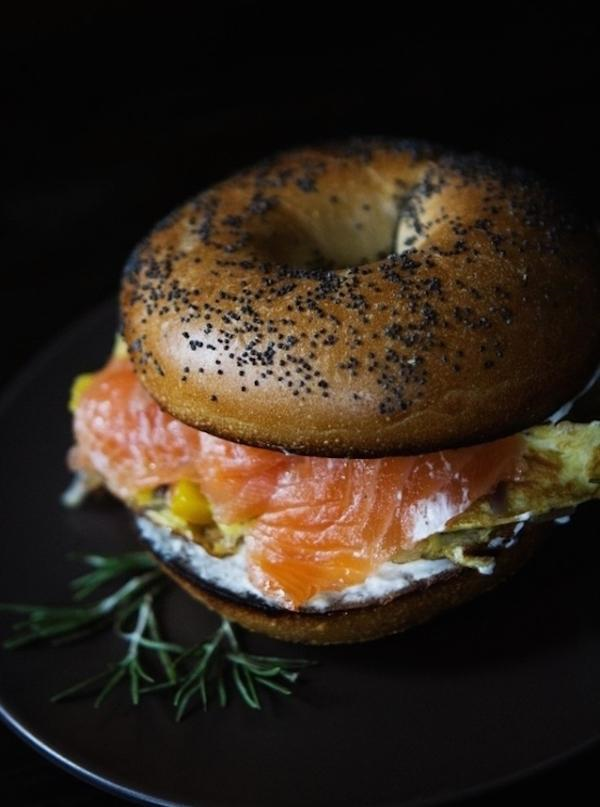26 带有熏鲑鱼和鸡蛋的百吉冰