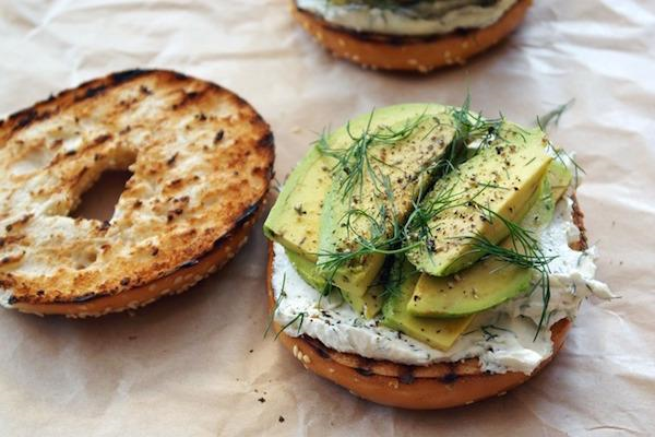 6 莳萝奶油芝士、鳄梨面包圈三明治