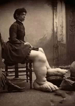 12、1890年左右,俄亥俄州这位女士患了“象腿症”。