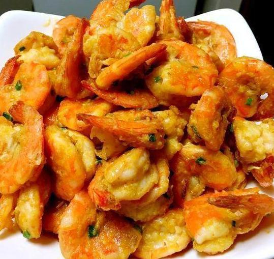 材料: 虾、咸蛋黄、盐、料酒、胡椒粉;