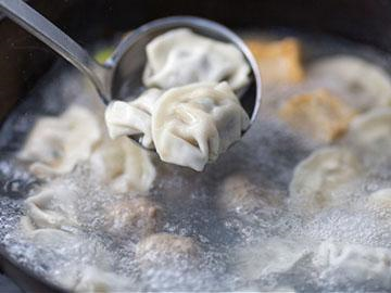 锅里放水开火,另一边准备一盆清水,把冻饺子放进去,等锅里的水温到达40°C左右下饺子。这样煮的饺子,模样好看,不破皮,口感还会如同新包的饺子一样。