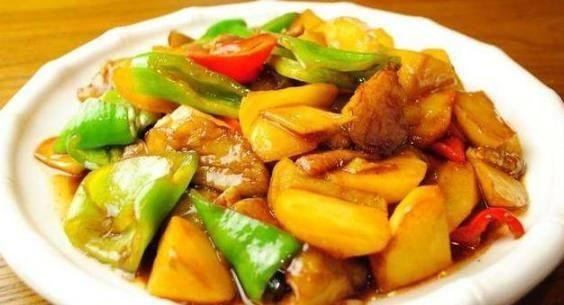 10、 放入青椒片炒至青椒变色,倒入水淀粉勾芡,放入味精调匀即可