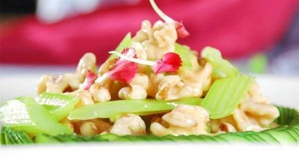 材 料:芹菜、核桃仁、盐、蘑菇精、麻油