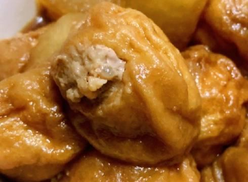将油面筋戳一个小孔并轻轻把面筋里面压实成一中空的壳。