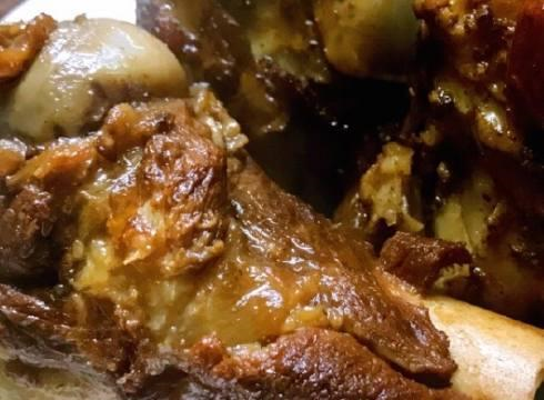 汤汁不要收的太干,吃完棒骨,汤汁再加点水还可以涮点蔬菜吃。
