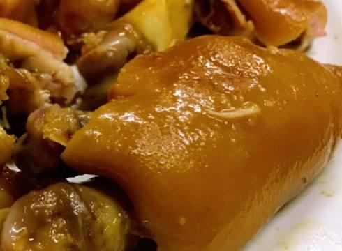 煮上50分钟,出锅盛盘,一道美味软糯的酱烧猪手做好了。