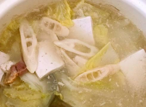 20分钟后加入白菜,等白菜煮的稍微软一些就可以放入适量的盐,