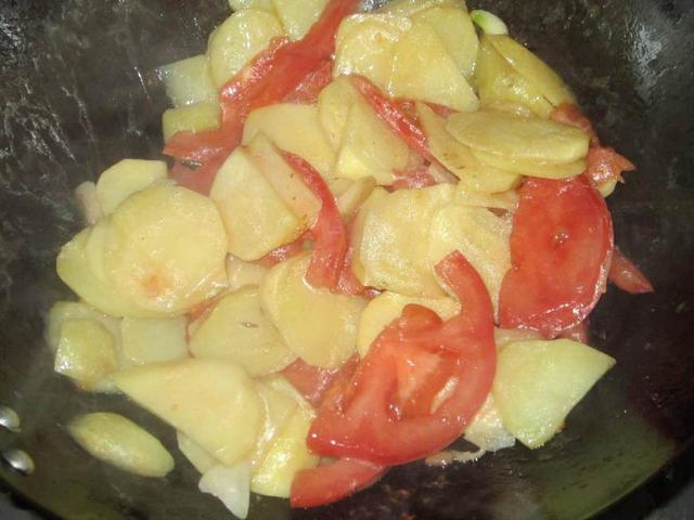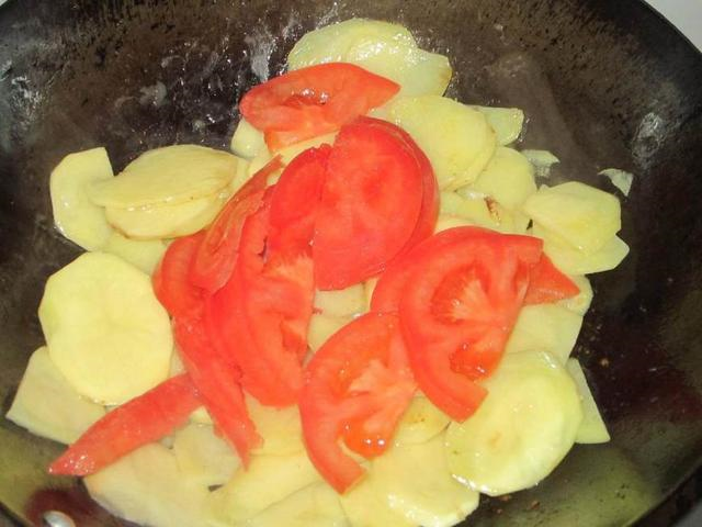 起锅,热锅凉油,加入葱姜蒜炒香,随后将土豆片放入锅内翻炒至半透明之后,之后放入切好的西红柿,根据个人的口味添加适量的白糖,然后继续进行翻炒,直到西红柿开始烂熟即可出锅,如果朋友们不喜欢太过绵软的土豆片,那可以将翻炒时间调短,总之只要是自己用心烹调的,肯定味道都是美妙无比。