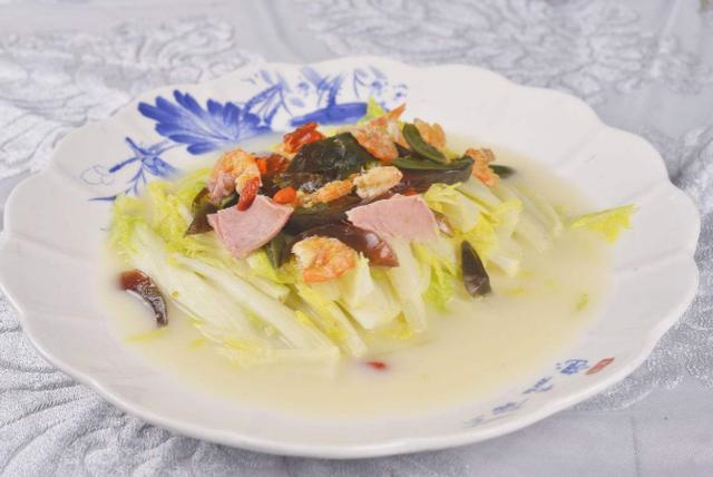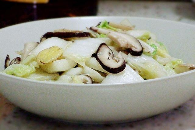 原料:白菜200克,干香菇3克,盐5克,猪油10克。