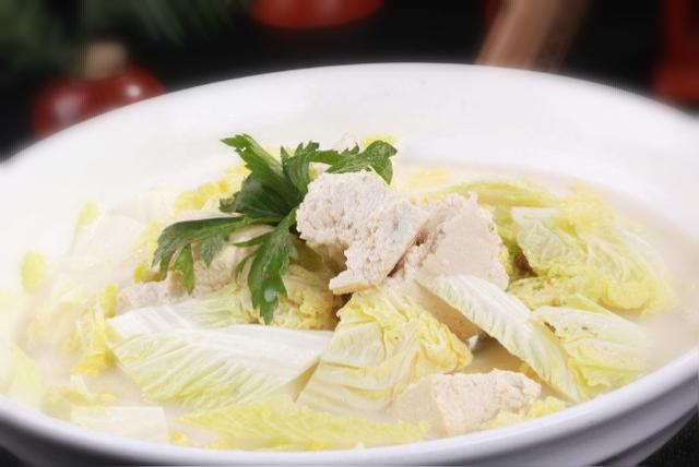原料:白菜500克,北豆腐100克,鸡蛋60克,黄豆粉20克,花生油25克,胡椒粉2克,盐2克。