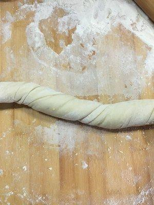 差不多一个小时、面醒好了、接着再揉面团、一定要把面团揉的很光滑、大概要揉10斤分钟、就图片那样揉好后分成几大块就可以