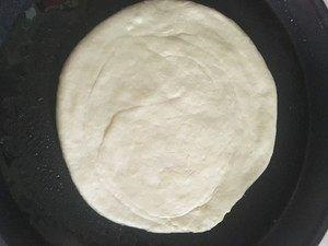 锅里放少许油、把饼放在锅里、一会儿看见饼面变色有点透明的那种颜色就翻一面、这时候把锅盖盖上