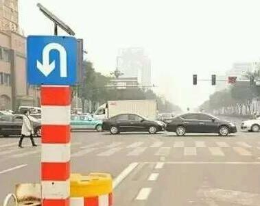 3、道路中间没有虚线,隔离带没有设置缺口,红灯时不可以掉头。