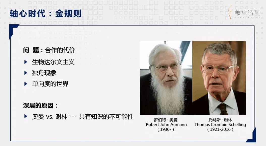 因为我们过去一报还一报的合作,带来的社会代价非常之大。用我的话说,文明的演进史就是两件事情的构成: