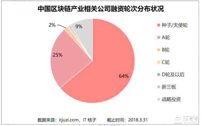 从目前趋势来看,由于区块链技术的落地速度也在加快,市场开始趋于理性,股权投资人更愿意投资能看到有具体落地场景的项目,白皮书中预计今年区块链领域的投资会是一个高峰期。从中国区块链公司融资轮次分布状况来看,目前有接近 90%的投资事件集中在早期阶段(A 轮及以前),另外有 9%的投资事件属于战 略投资,B 轮及以后的投资事件占比仅为 2%。因此,区块链产业目前 还处于非常早期的阶段。随着整个产业的高速发展以及项目落地速度 的加快,融资轮次将逐渐往后延伸,未来会出现更多进入中后期阶段的项目。