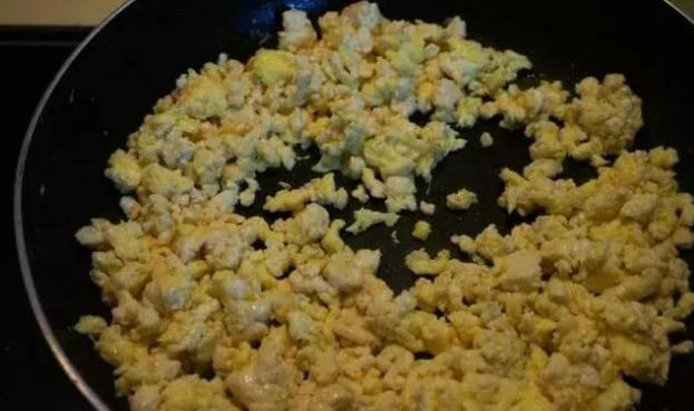 4、用铲子翻炒均匀,成块,出锅。