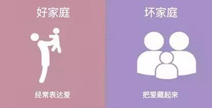 坏家庭:把爱藏起来。坏的家庭,会把爱隐藏起来,甚至缺乏爱。父母很少对孩子表达爱意,冷漠、粗暴。久而久之,孩子的内心就会有很多创伤,缺乏安全感,亲子关系疏远。