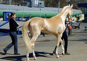 阿哈尔捷金马,又叫汗血宝马。皮肤较薄,奔跑时,血液在血管中流动容易被看到,另外,马的肩部和颈部汗腺发达,马出